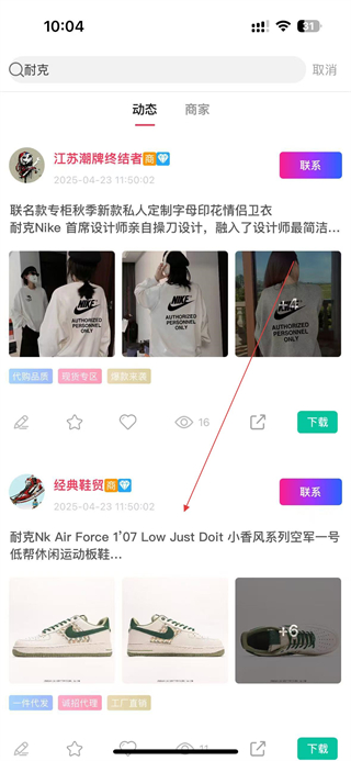2、登錄后在搜索框輸入耐克關鍵詞,切換到動態分類,瀏覽展示的潮品列表,選擇一款耐克板鞋商品點擊進入詳情頁。