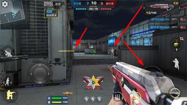 2、操控角色移動,瞄準敵方破壞者射擊,積累擊殺數,提升團隊比分,助力守衛者陣營取得優勢。