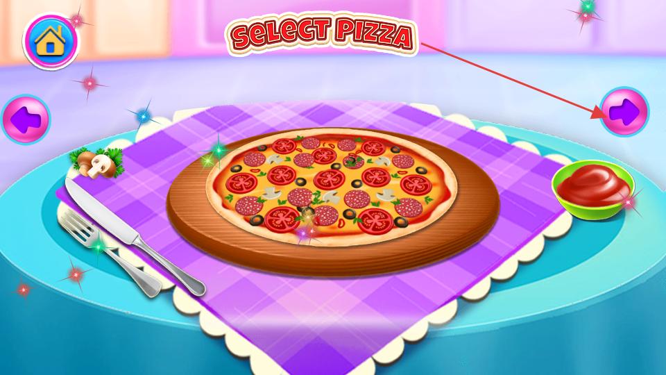 2、在SELECTPIZZA界面根據提示,選擇想要制作的披薩樣式,確定后進入下一步食材準備環節。