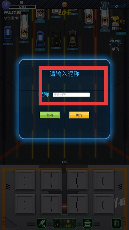 2、輸入完成后,點擊確定按鈕,完成昵稱設定即可進入游戲,如果不想設定昵稱,也可以點擊取消。