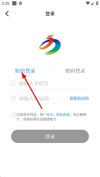 3、選擇短信登錄方式,需輸入手機號并獲取驗證碼,勾選協議后點擊登錄,未注冊用戶登錄時會自動創建賬號,也可選擇密碼登錄。