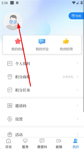 2、點擊底部我的進入個人界面,未登錄時顯示登錄入口,含我的收藏、評論等功能,還有個人資料、積分商城等服務類選項。
