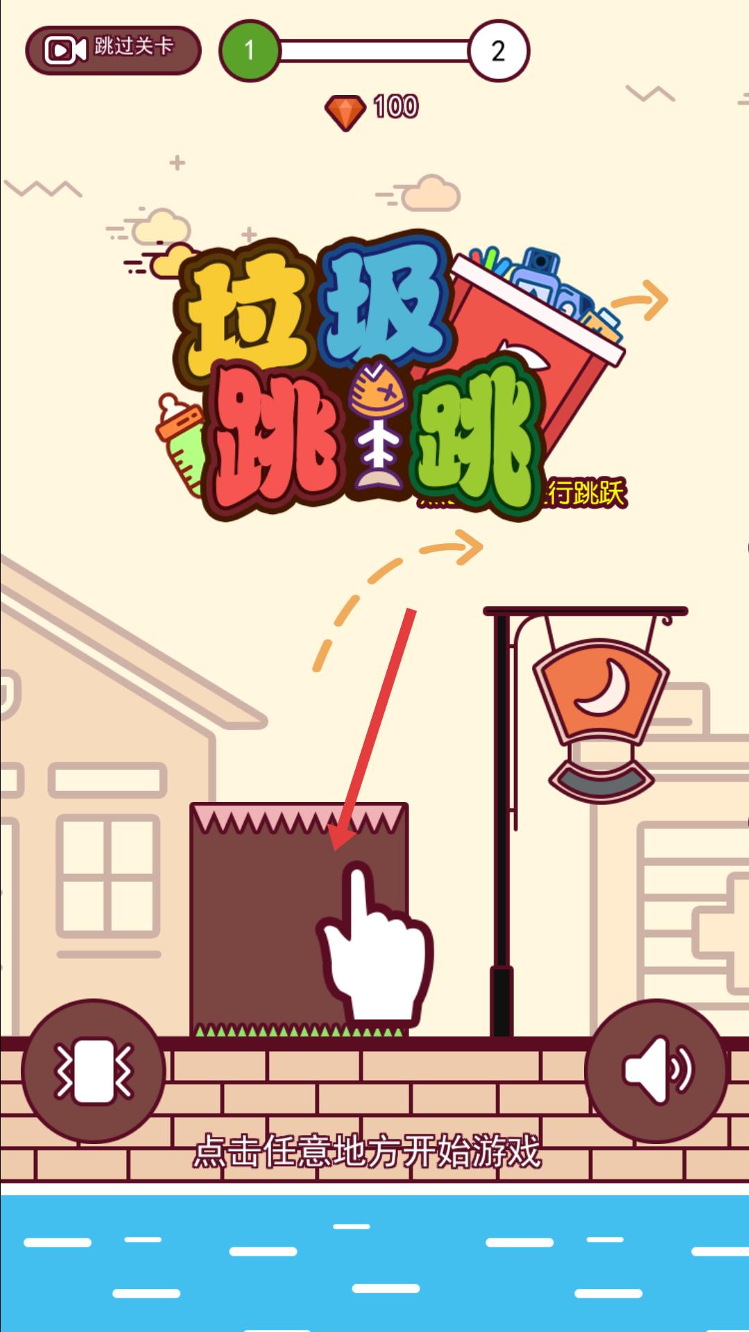 1、游戲開始界面點擊任意地方即可啟動游戲,開啟垃圾跳躍分類的挑戰,準備操控垃圾進行跳躍和分類操作。