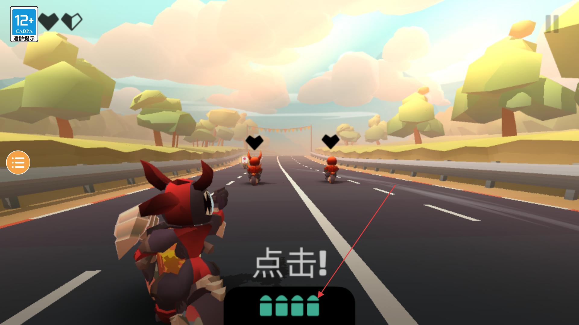 4、在追擊過程中看到點擊的提示時,點擊對應的提示區域,對前方的敵人進行攻擊推進追擊任務,完成公路摩托的冒險。