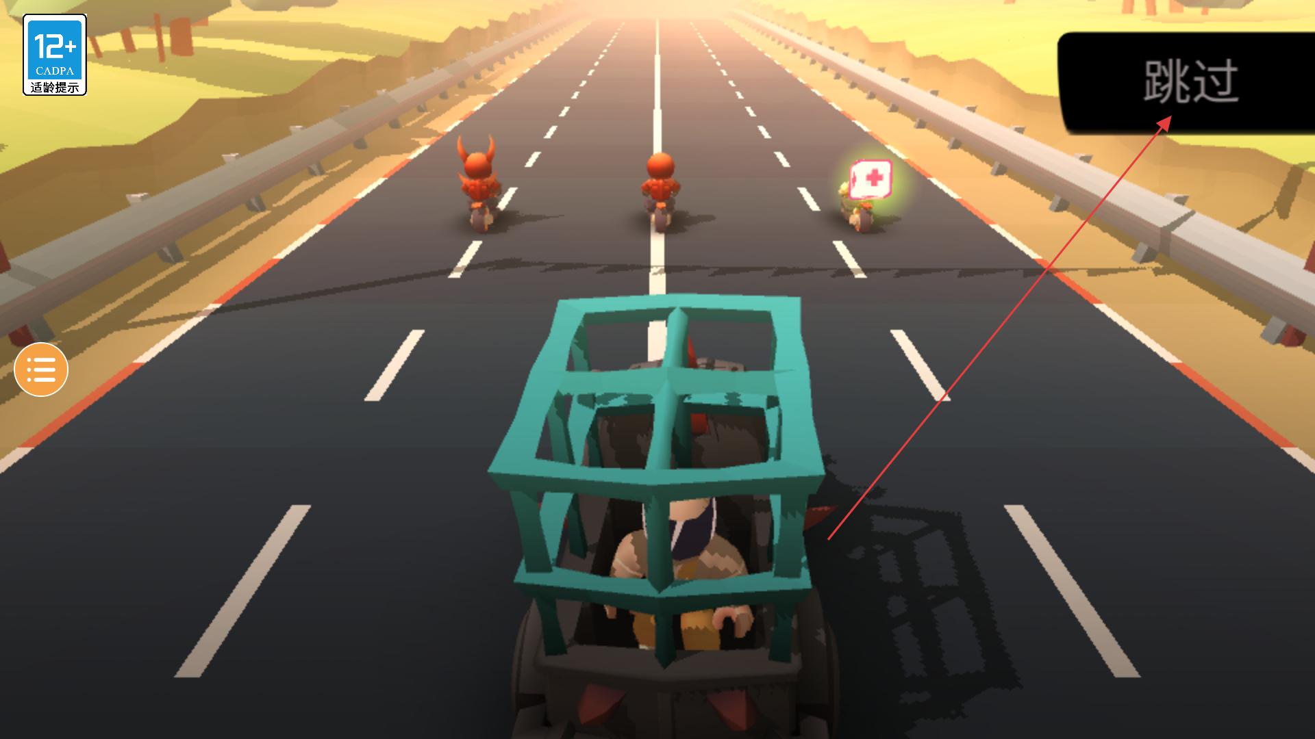 1、進入游戲若有開場動畫,可點擊跳過按鈕,快速進入摩托追擊的冒險場景,操控摩托在公路上開始行駛,準備追擊目標。