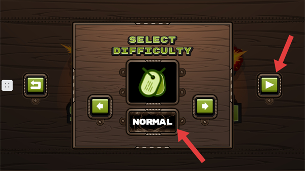 2、進入難度選擇界面,可選擇NORMAL等難度,選好后點擊前進按鈕,進入對應難度的游戲關卡。