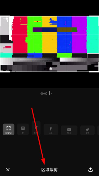 4、進入區域裁剪界面,有自定義及多種比例的裁剪尺寸可選,借助該功能可對視頻素材進行特定區域的裁剪操作。