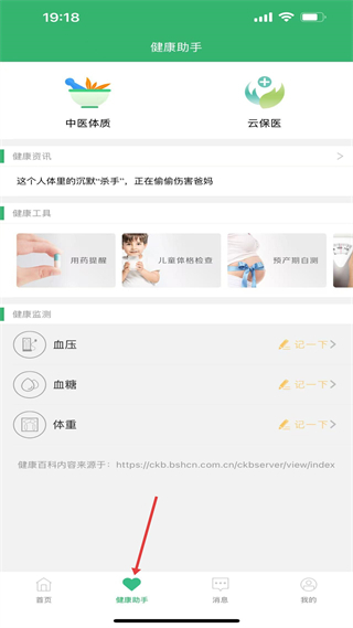 2、健康助手含中醫體質等功能,有健康資訊和用藥提醒等工具,可監測血壓血糖體重,提供健康知識和自我管理手段。
