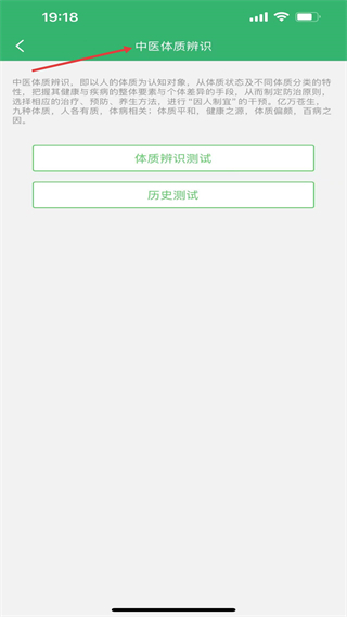 3、中醫體質辨識可進行測試和查看歷史記錄,通過辨識制定個性化防治養生方案,實現因人制宜的健康干預。