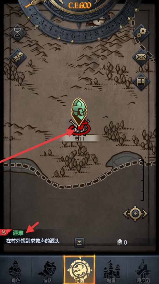 1、地圖界面點擊村口接遇難任務,前往村外探尋求救源頭,借助界面功能推進,遵循時間線,解鎖新區域,開啟冒險旅程。