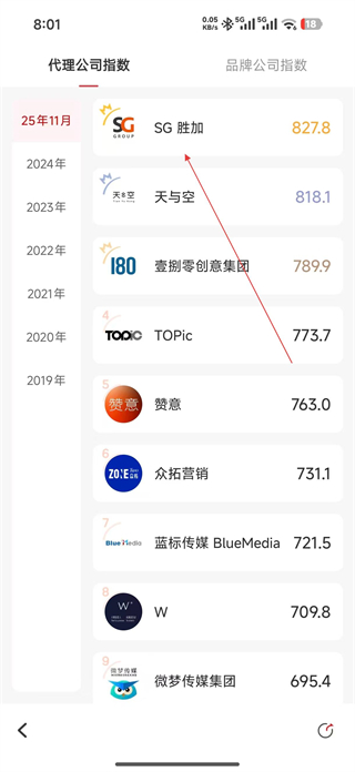 1、打開平臺進入代理公司指數頁面,選擇目標公司SG勝加,點擊進入對應的代理公司詳情頁面。