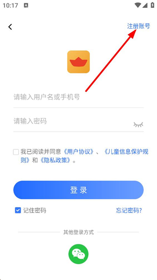 3、進入登錄界面后,可輸入用戶名或手機號及密碼登錄,也能點擊注冊賬號開啟新用戶注冊流程,同時支持微信等其他方式登錄。