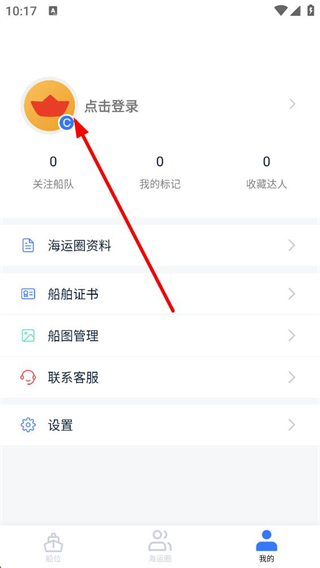 2、進入個人中心頁面,能看到關注船隊我的標記等功能模塊,點擊點擊登錄區域,即可進入登錄界面,準備進行賬號相關操作。