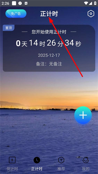 4、切換到正計時界面,展示當前正計時時長及對應日期,可通過界面功能添加新的正計時任務,助力記錄時長類事件。