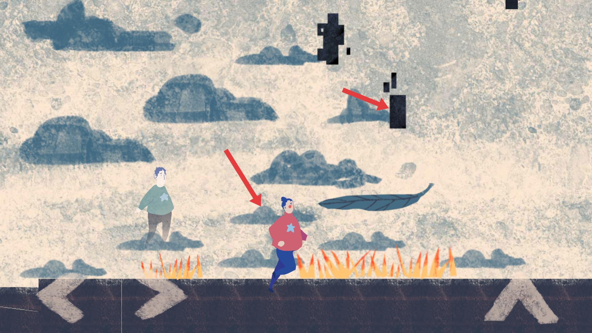 4、場景中出現火焰等障礙,還有黑色方塊,要操控角色靈活移動,躲避火焰,同時留意空中方塊,順利通過此區域。