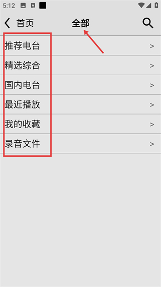 1、全部頁,設推薦電臺等分類,覆蓋電臺、播放記錄等功能,是快速定位內容的導航入口,便于用戶按需選擇資源。