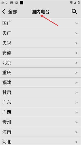 2、國內電臺頁,按機構、地域劃分,含國廣、各省市電臺等分類,幫助用戶精準找到對應區域或機構的電臺資源。