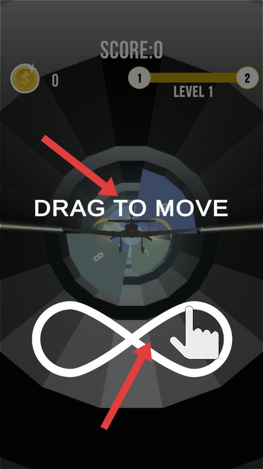 2、游戲中按照DRAG TO MOVE的提示,拖動屏幕來控制飛機移動,讓飛機在通道里順利飛行。