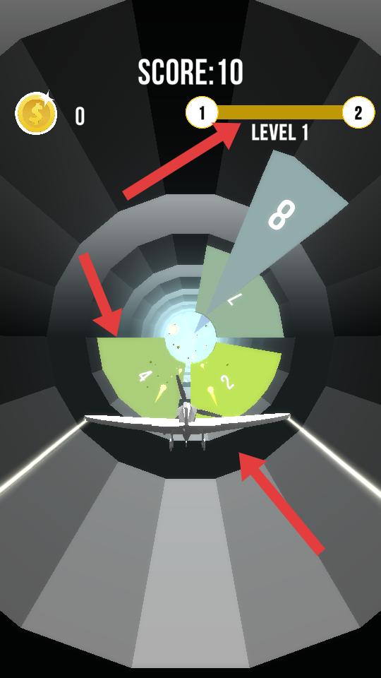 3、操控飛機在通道飛行時,會遇到帶有數字的區域,飛機經過這些區域,能獲取分數,努力提升分數。