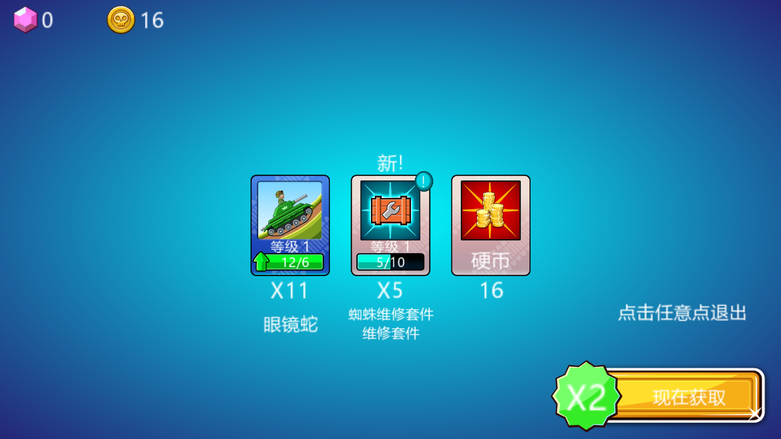 2、當玩家在完成任務或關卡后,可以獲得獎勵,如維修套件、硬幣等,可以點擊任意點退出獎勵界面。