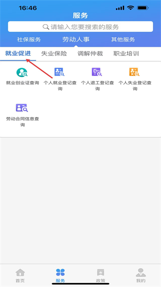 1、就業促進界面聚焦就業服務,含就業創業證就業登記等查詢功能,覆蓋就業全流程,提升事務辦理效率。