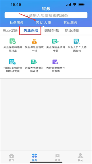 2、失業保險界面整合待遇核定申領服務,含養老繳費補貼相關功能,適配失業人員待遇申領與補貼辦理。