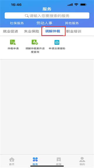 3、調解仲裁界面提供仲裁申請案件查詢服務,配套法律援助申請功能,幫助勞動者解決爭議維護權益。