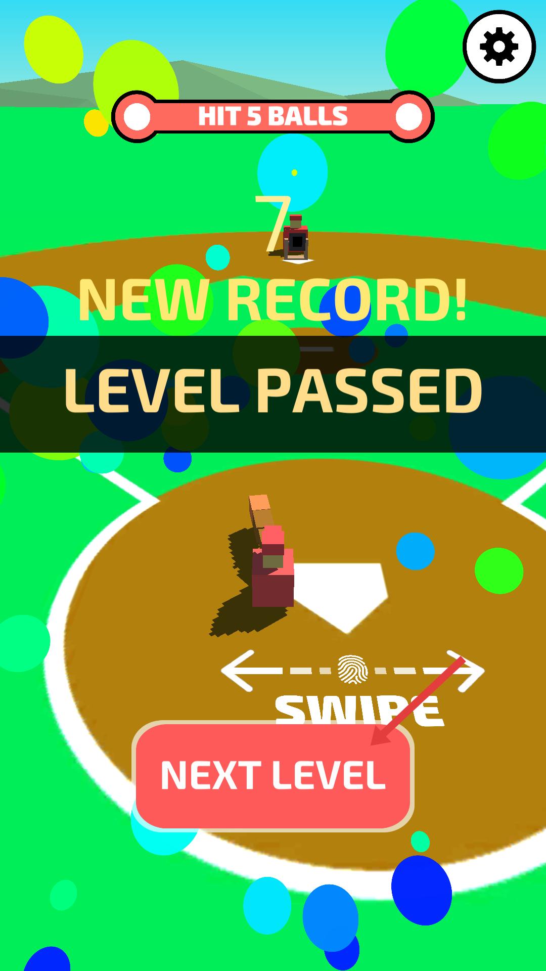 4、成功擊中5個球后界面顯示關卡通過,點擊下一關按鈕,進入下一關,迎接更具挑戰的擊球任務。