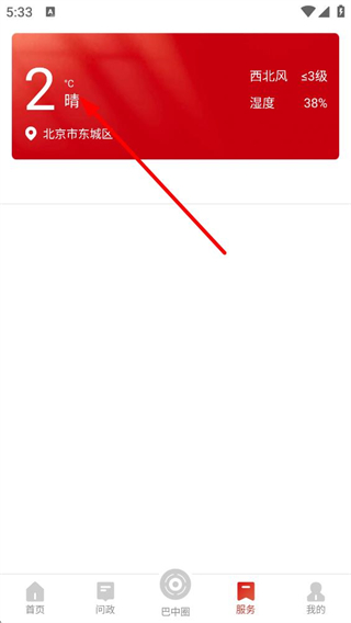 4、進入服務界面能查看天氣信息,包含溫度、風向等實時氣象數據,可在此獲取相關生活服務類的信息內容。