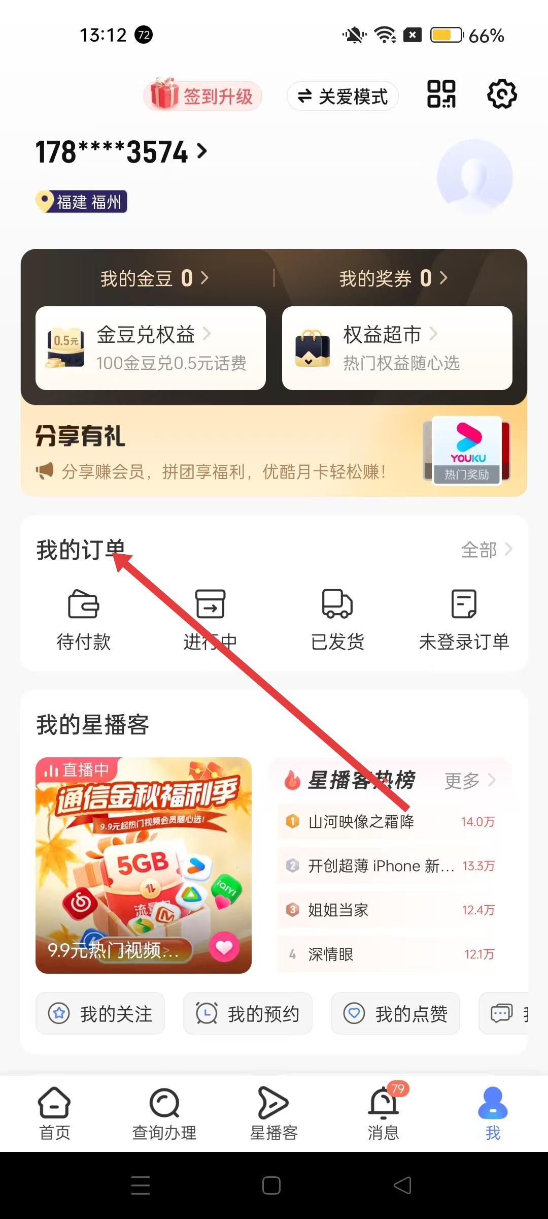 2、個人頁面點擊我的訂單,進入訂單查詢頁面,可查看全部訂單及分類訂單。