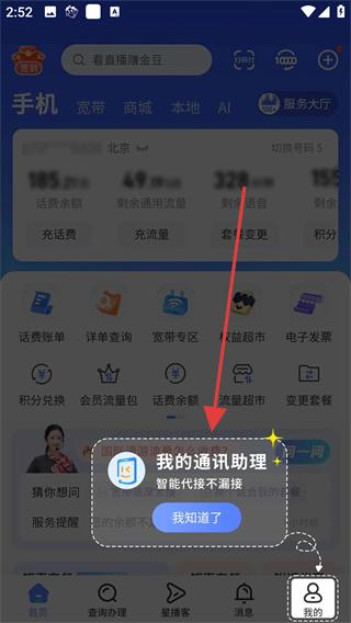2、在主界面看到我的通訊助理提示,點擊我知道了按鈕,關閉提示繼續操作。
