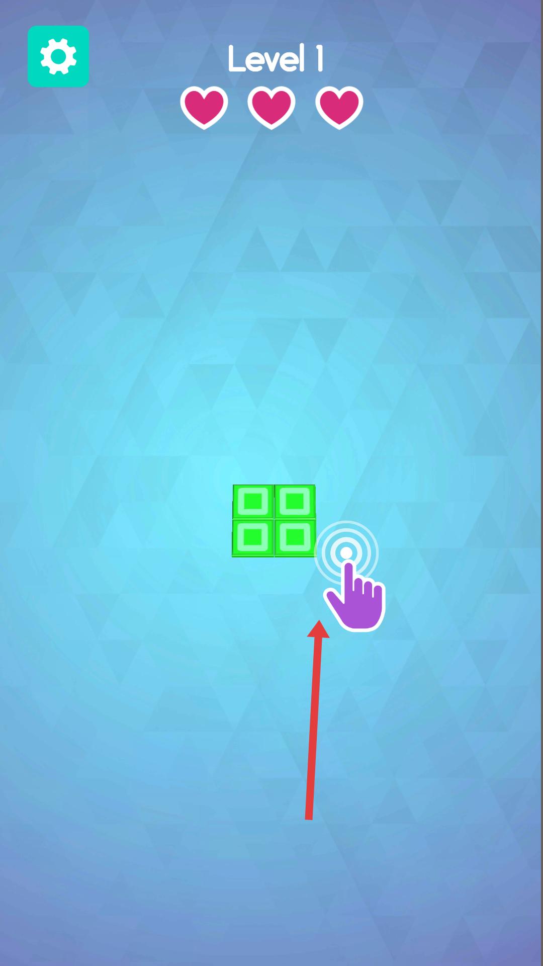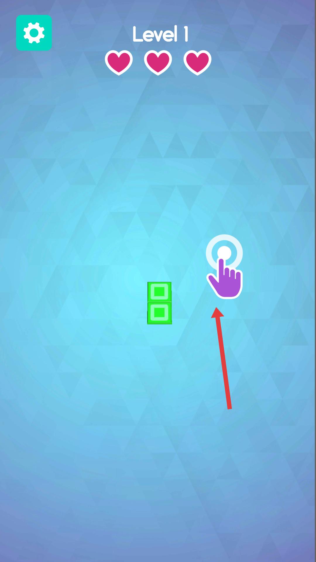 1、進入Level1,界面有綠色方塊和指引手勢,按照提示點擊綠色方塊右側區域,觸發方塊變化,推進游戲。