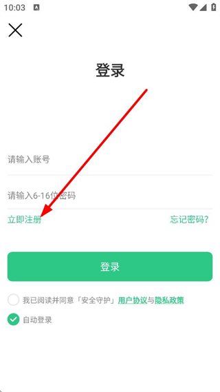 2、賬號登錄頁面,需輸入賬號與對應密碼完成登錄,若未注冊賬號,點擊立即注冊選項,進入注冊操作頁面。