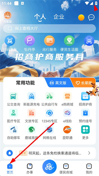 3、進入首頁,可使用掃碼乘車、公交查詢等常用功能,還有醫療專區、文旅專區等服務板塊,查看最新資訊動態。