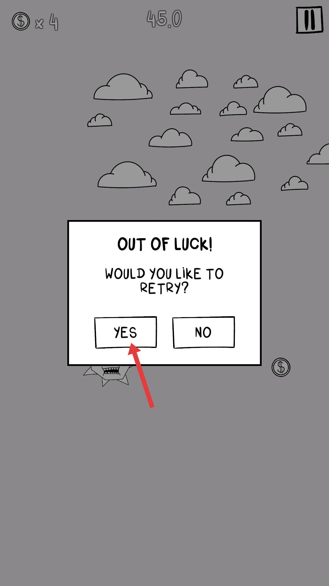 4、若游戲失敗,界面會彈出運氣不好,是否要重新開始的提示,點擊YES按鈕可重新開始游戲,再次挑戰。