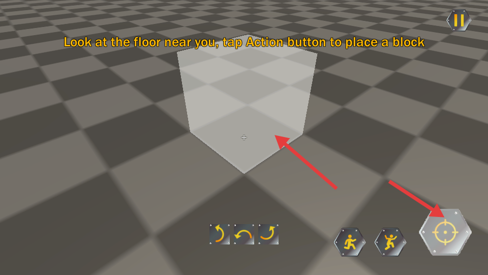 3、教程里看向附近地面,點擊動作按鈕能放置方塊,這是搭建機械的基礎步驟,通過放置方塊構建機械的雛形。