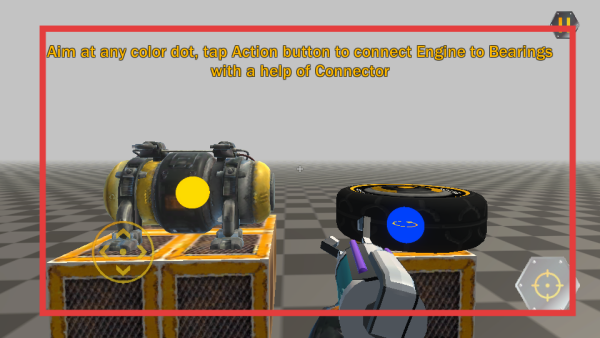 4、瞄準任意顏色的點,點擊動作按鈕借助連接器可將引擎與軸承連接,這是組裝機械部件的關鍵操作,能讓機械運轉起來。