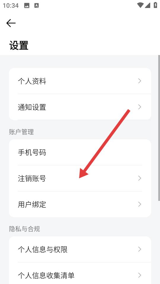 2、設置頁面涵蓋個人資料、通知設置等內容,在賬戶管理板塊,有注銷賬號選項供用戶操作。
