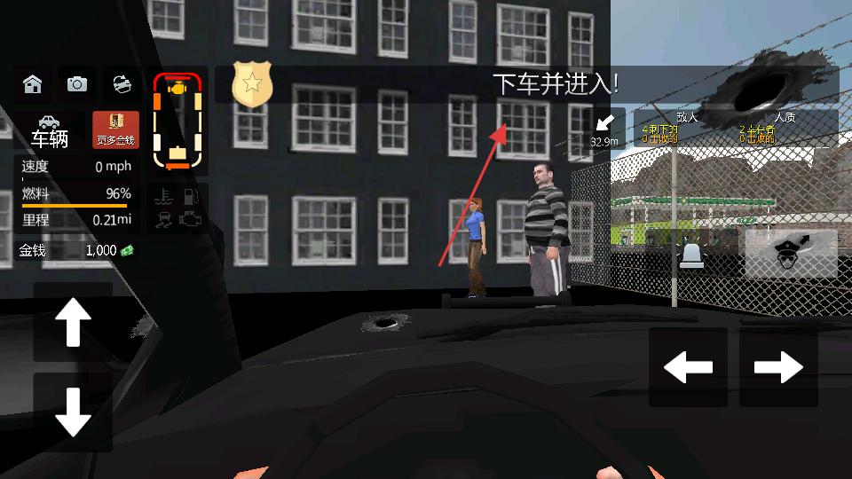 4、游戲任務界面,點擊下車進入,進入建筑,解救人質,對抗敵人,完成警務任務。