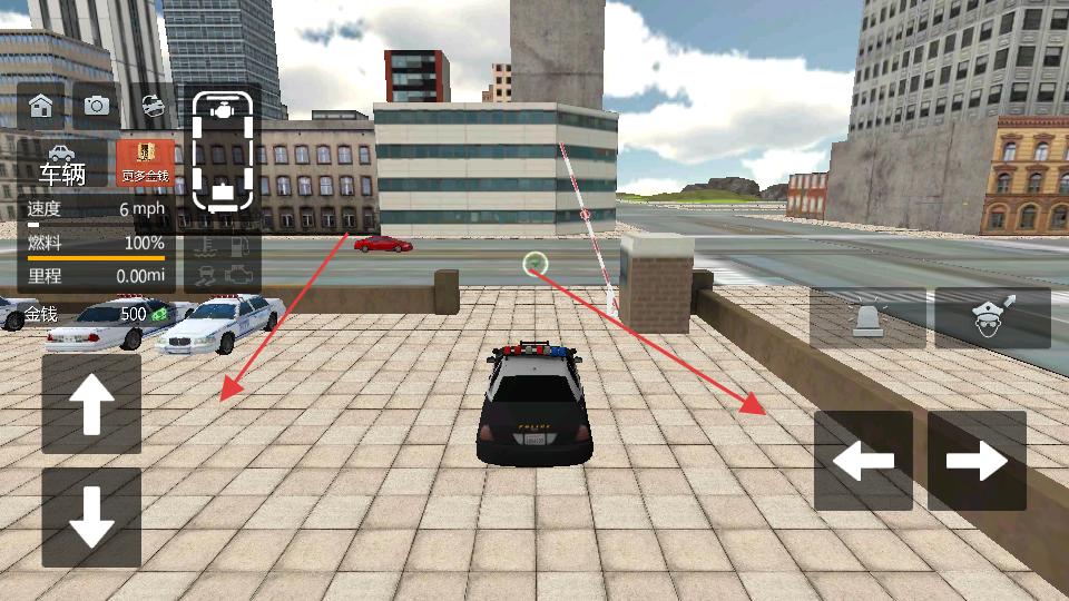 2、進入警車駕駛,按上下讓車移動,左右調整方向,駕駛警車,在城市,巡邏、響應警情。