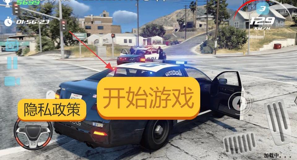 1、游戲啟動界面,開始游戲按鈕醒目,點擊開啟,駕駛警車,在開放城市,應對警情,展開冒險。