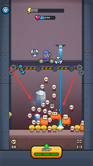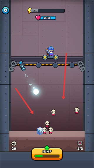1、動態演變的戰場環境帶來持續緊張感,平臺下墜速度會隨游戲進度逐步加快,敵群規模與進攻頻率同步提升,考驗應變能力。