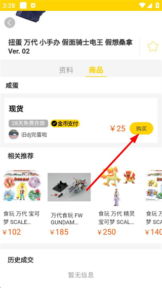 3、商品詳情頁可查看商品價格、狀態等信息,點擊購買按鈕,進入交易確認界面,準備完成商品的購買流程。