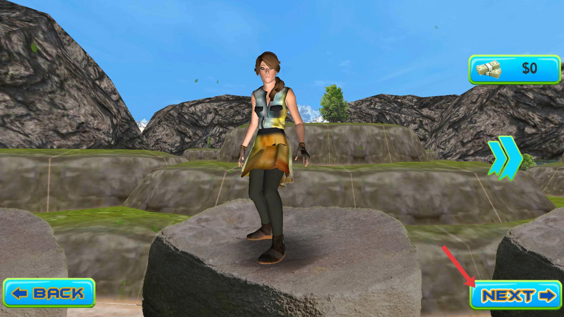2、在角色界面點擊右下角的NEXT按鈕,可查看更多角色,選擇心儀的角色后進入游戲場景。