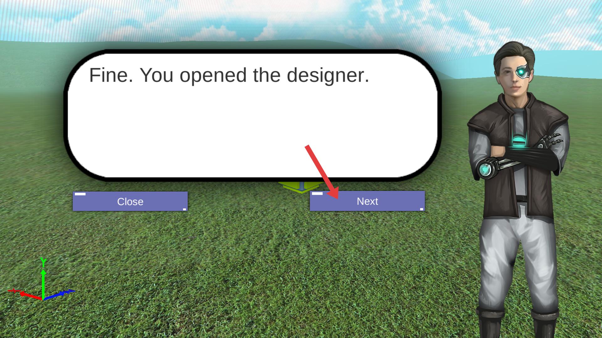 3、當界面顯示已經完成初步設計的提示時,點擊Next按鈕,可繼續推進游戲流程,進入后續的設計或操作環節。