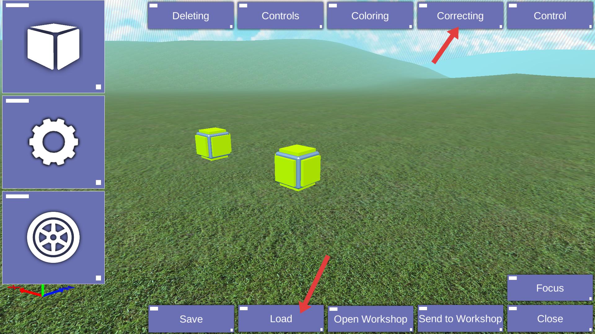 4、若要對已有的綠色方塊等結構進行修正,點擊Correcting按鈕,之后還能利用Load等按鈕加載內容,完善建造或設計工作。
