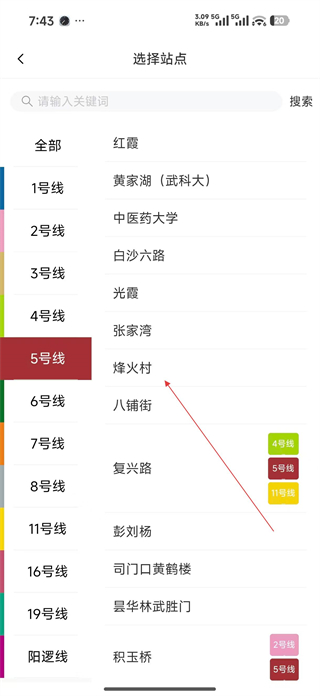 3、在選擇站點頁面選擇目標線路及站點,點擊對應的站點名稱,進入該站點的時刻表詳情頁面,查看運營時間信息。