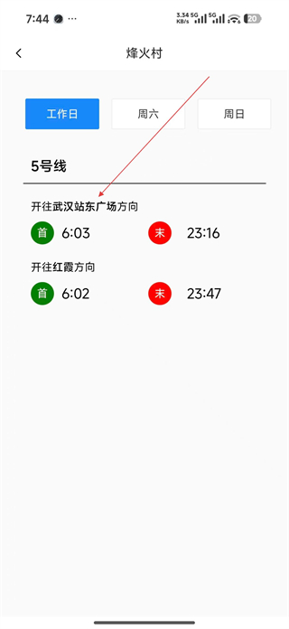 4、在站點時刻表頁面查看工作日運營時段,了解該站點不同方向列車的首末班車時間,獲取準確的乘車參考。