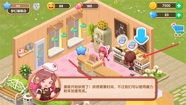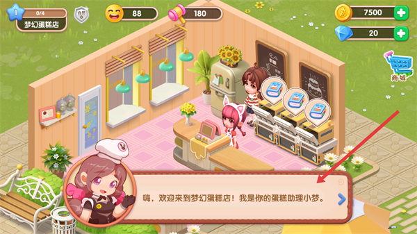 1、蛋糕助理小夢會歡迎你來到夢幻蛋糕店,開啟經營蛋糕店的旅程,準備制作和售賣各類蛋糕。