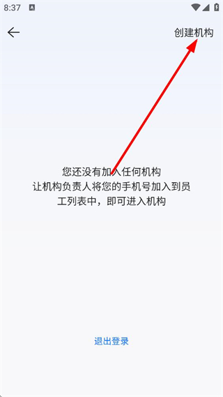 2、進入加入已有機構的頁面后,找到右上角的創建機構按鈕,點擊該按鈕,進入到創建新機構的專屬頁面。